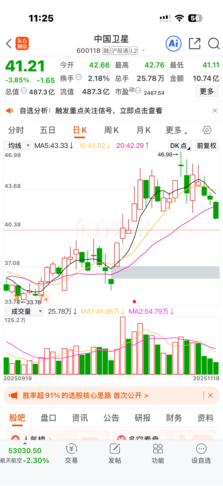 $中国卫星(SH600118)$ 不杀到我成本线 不停是吧
