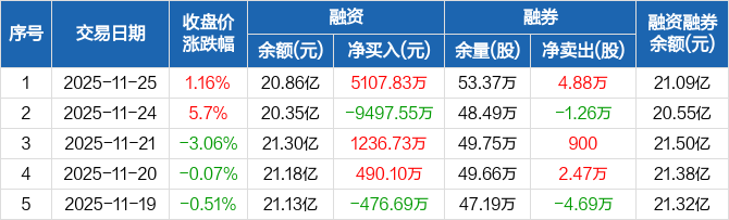 中国卫星:融资净买入5107.83万元,融资余额20.86亿元(11-25)