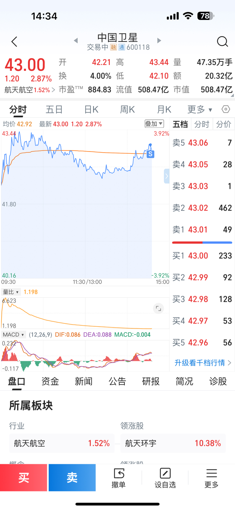 $中国卫星(SH600118)$ 跑了,不坚持了
