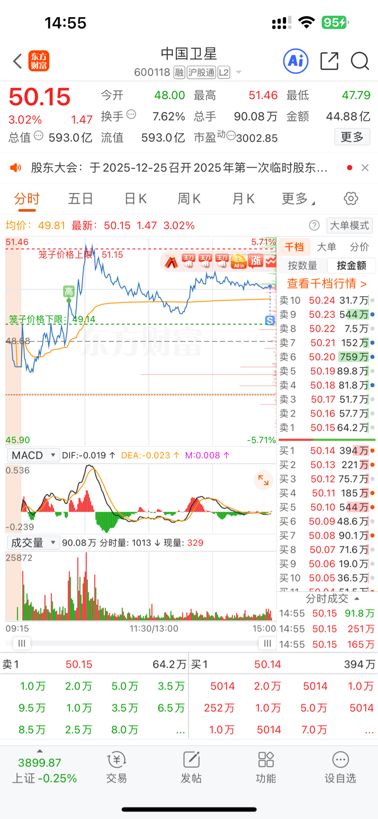 $中国卫星(SH600118)$ 明少尾盘减仓中国卫星