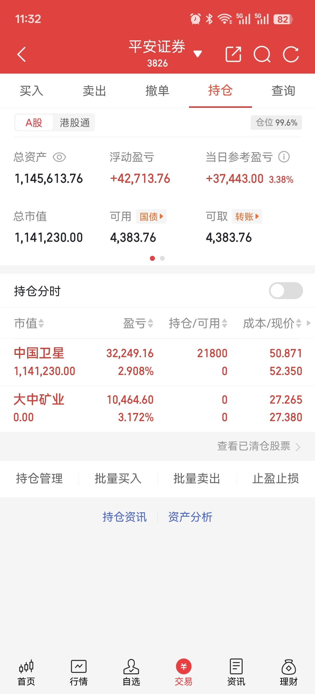 上半场结束,今天中国卫星没有涨停有点遗憾。但不后悔,早盘从大中矿业出来进了中国卫