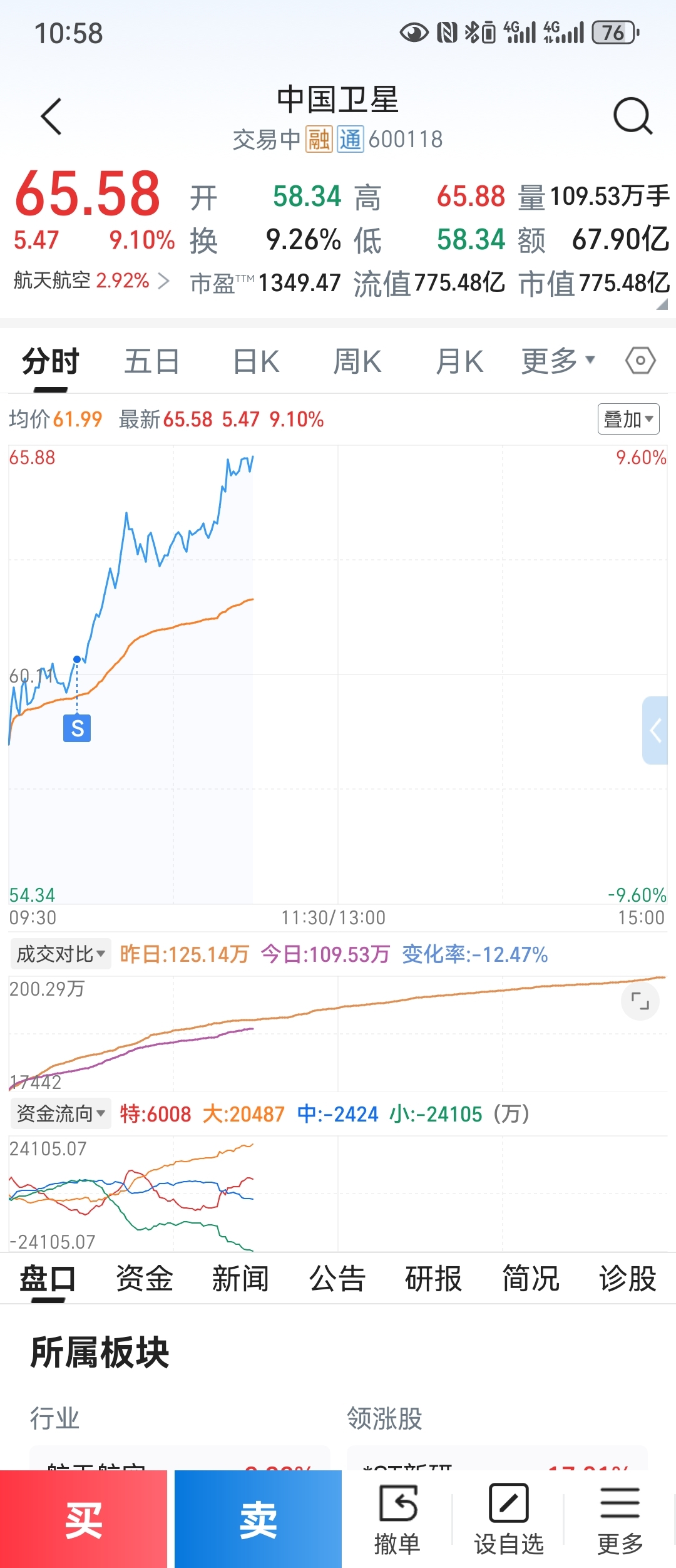 $中国卫星(SH600118)$ 我真的想哭,昨天亏五千