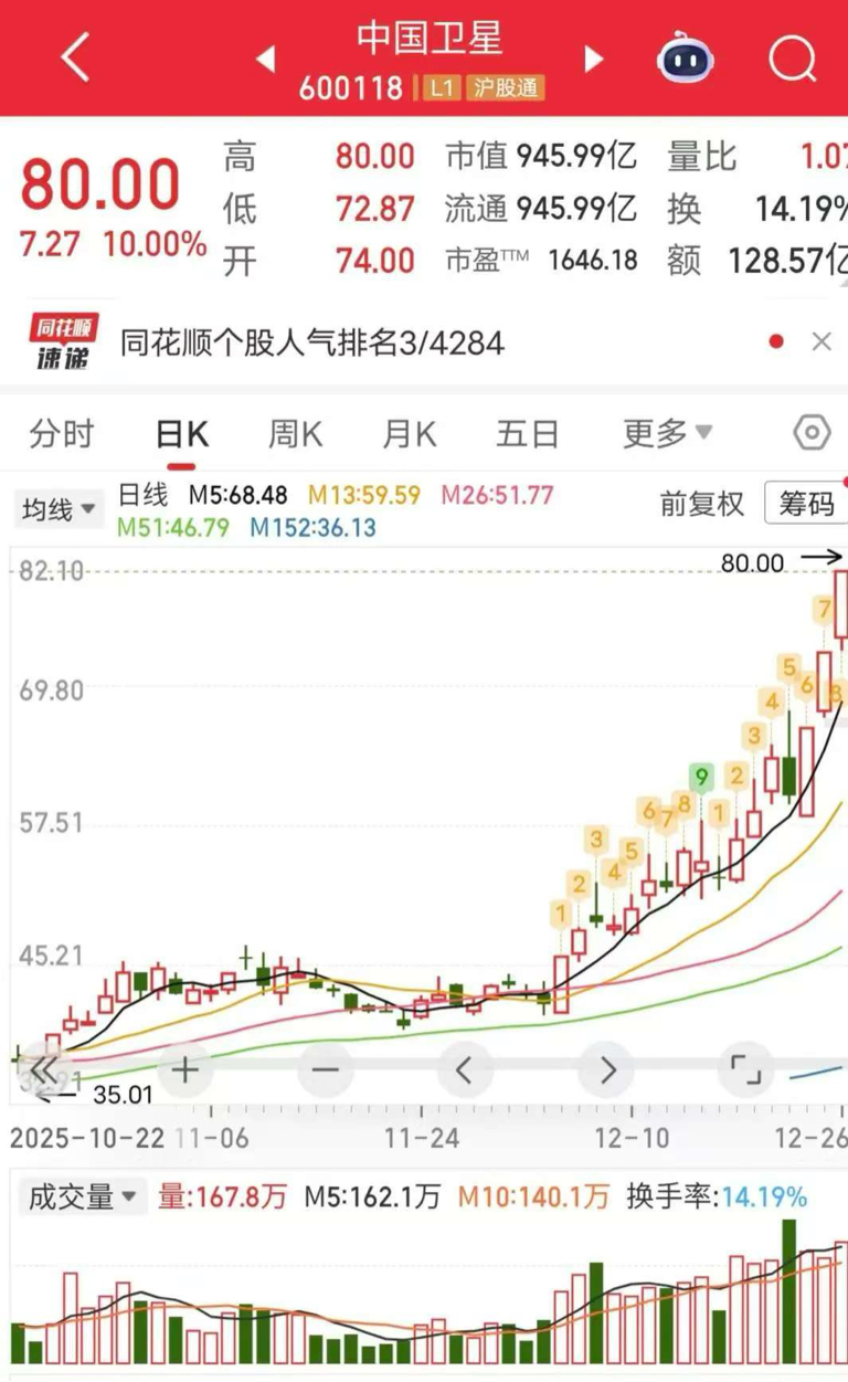 作手新一爆买4.7亿$中国卫星(SH600118)$ :
