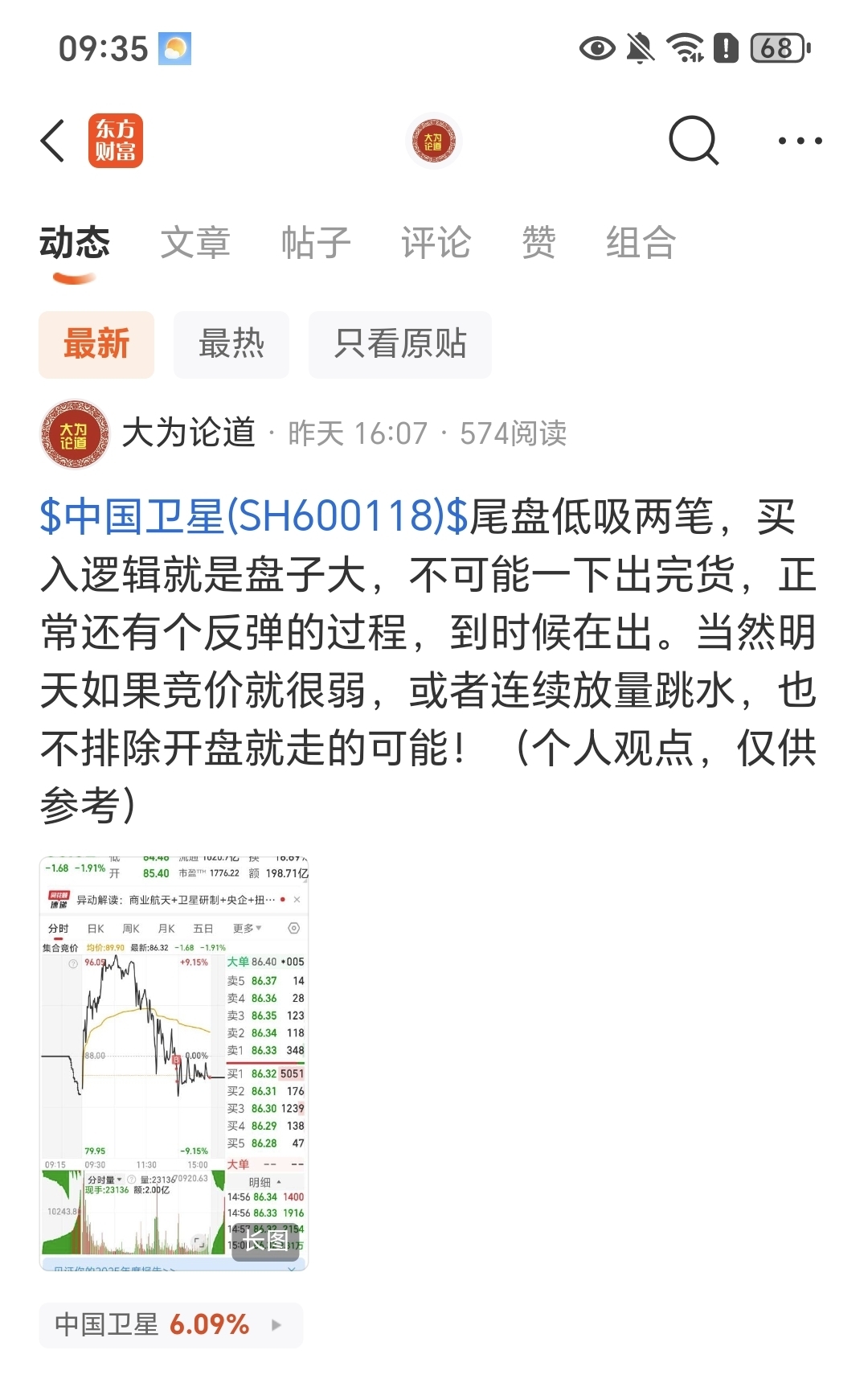 $中国卫星(SH600118)$ 因为没啥压力,所以并不急于走!后面冲涨停失败再考虑走不走吧!(个人投资记录,切勿模仿)