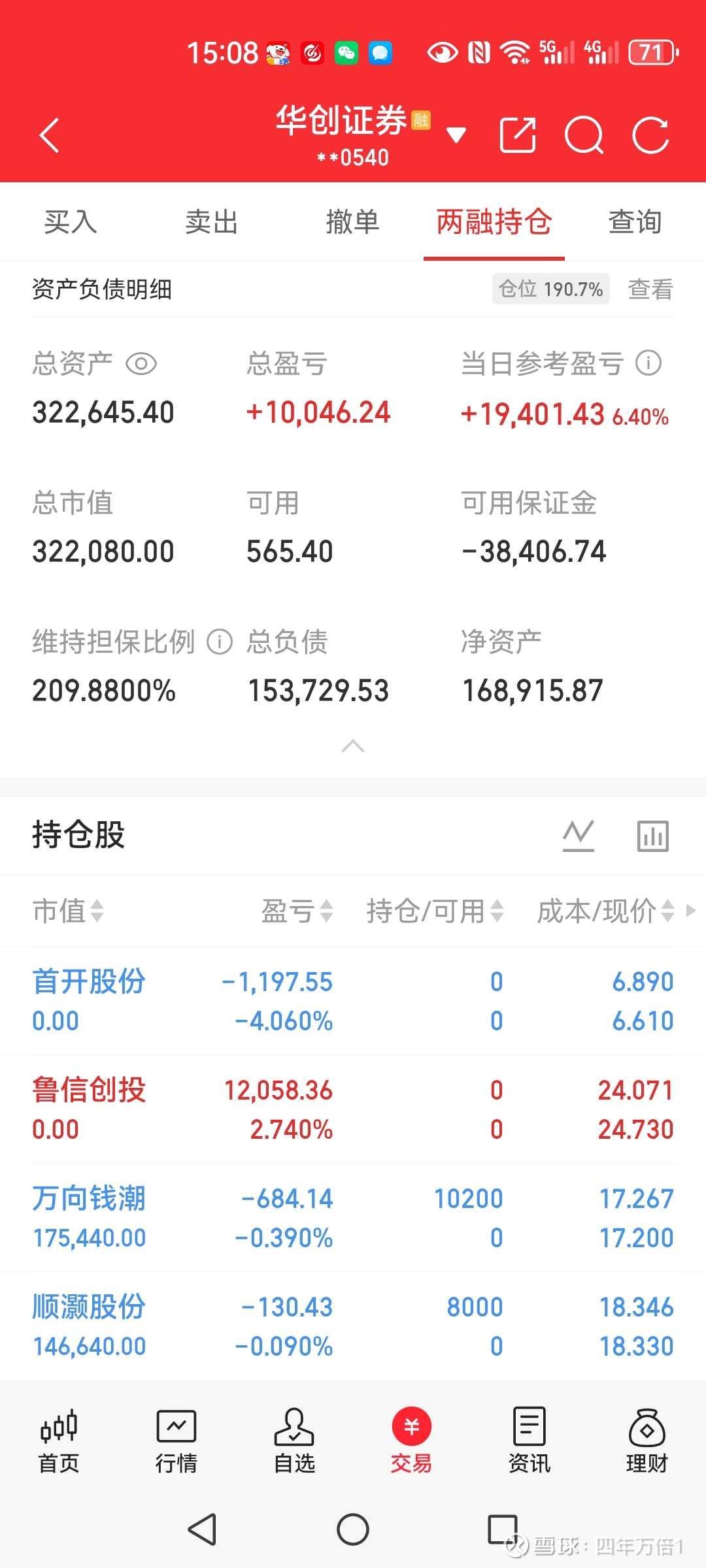 这个融资账户本金目前不到17万,看我多久翻倍翻10倍。600783今天涨停板全部清了,600376也清了,打板了002565和000559,以后就用这个可以融资的账户实盘,因为融资账户翻倍翻10倍更快。尾盘000559没有封住涨停,对于这种体量和成交额的股票,能否涨停已经不重要,今天肯定有很多资金和游资大佬进去。