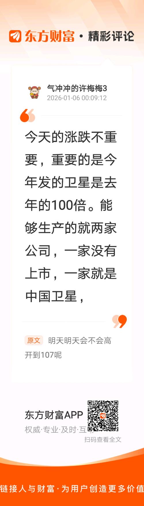 //@气冲冲的许梅梅3 :今天的涨跌不重要,重要的是今年发的卫星是去年的100倍。能够生产的就两家公司,一家没有上市,一家就是中国卫星,