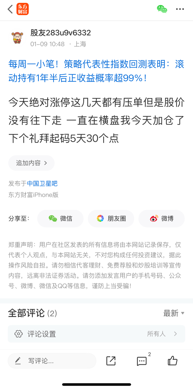温馨提示: 1.根据《证券法》规定,禁止编造、传播虚假信息或者误导性信息,扰乱证券市场;2.用户在本社区发表的所有资料、言论等仅代表个人观点,与本网站立场无关,不对您构成任何投资建议。用户应基于自己的独立判断,自行决定证券投资并承担相应风险。《东方财富社区管理规定》