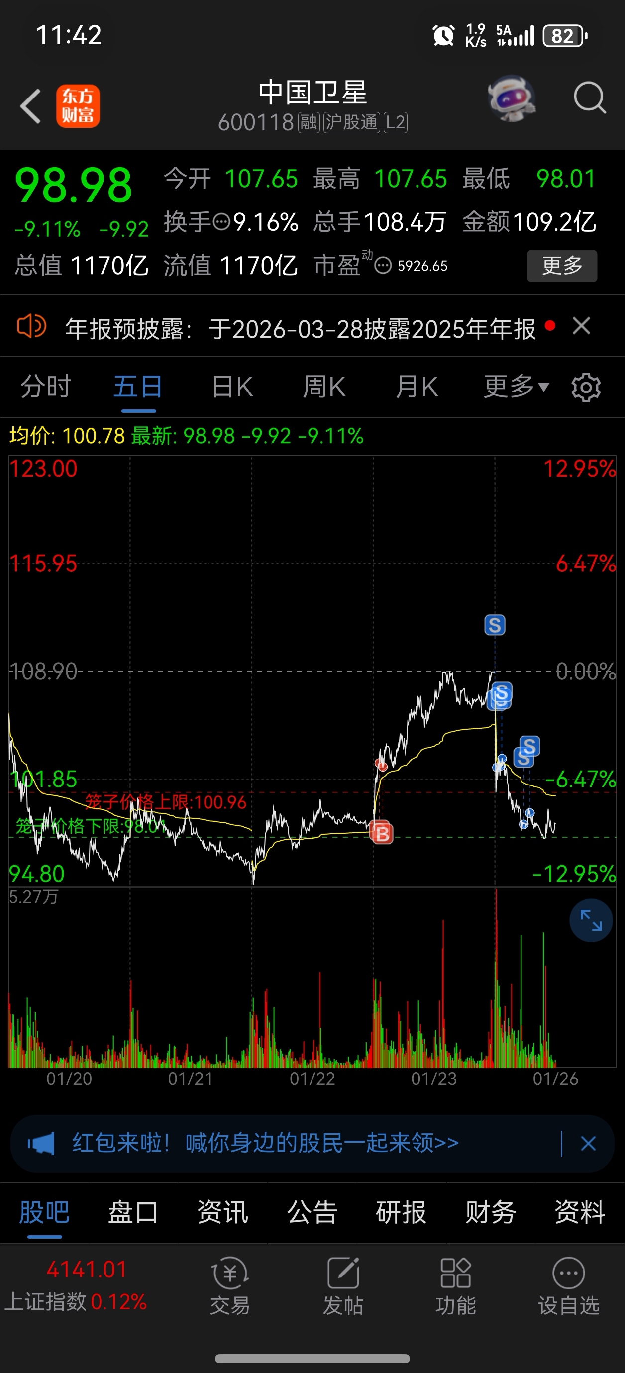 $中国卫星(SH600118)$ 周五全仓,集合按掉80%仓位,玛德这么弱连个冲高都不给,今天亏了2个多点,太难了