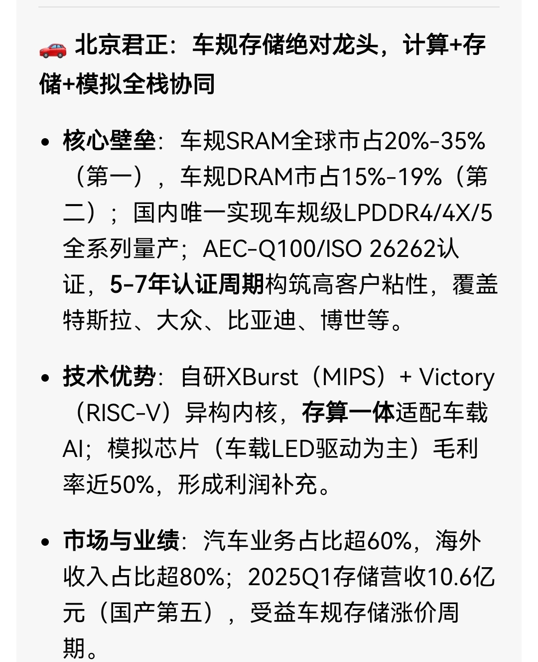 北京君正为车规芯片绝对龙头,随着固态电池陆续装车会出现换车高潮,黑马!