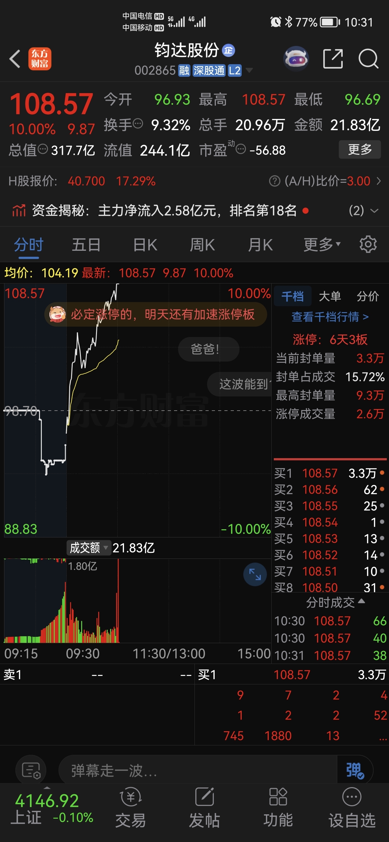 钧达股份涨停,你在这磨叽