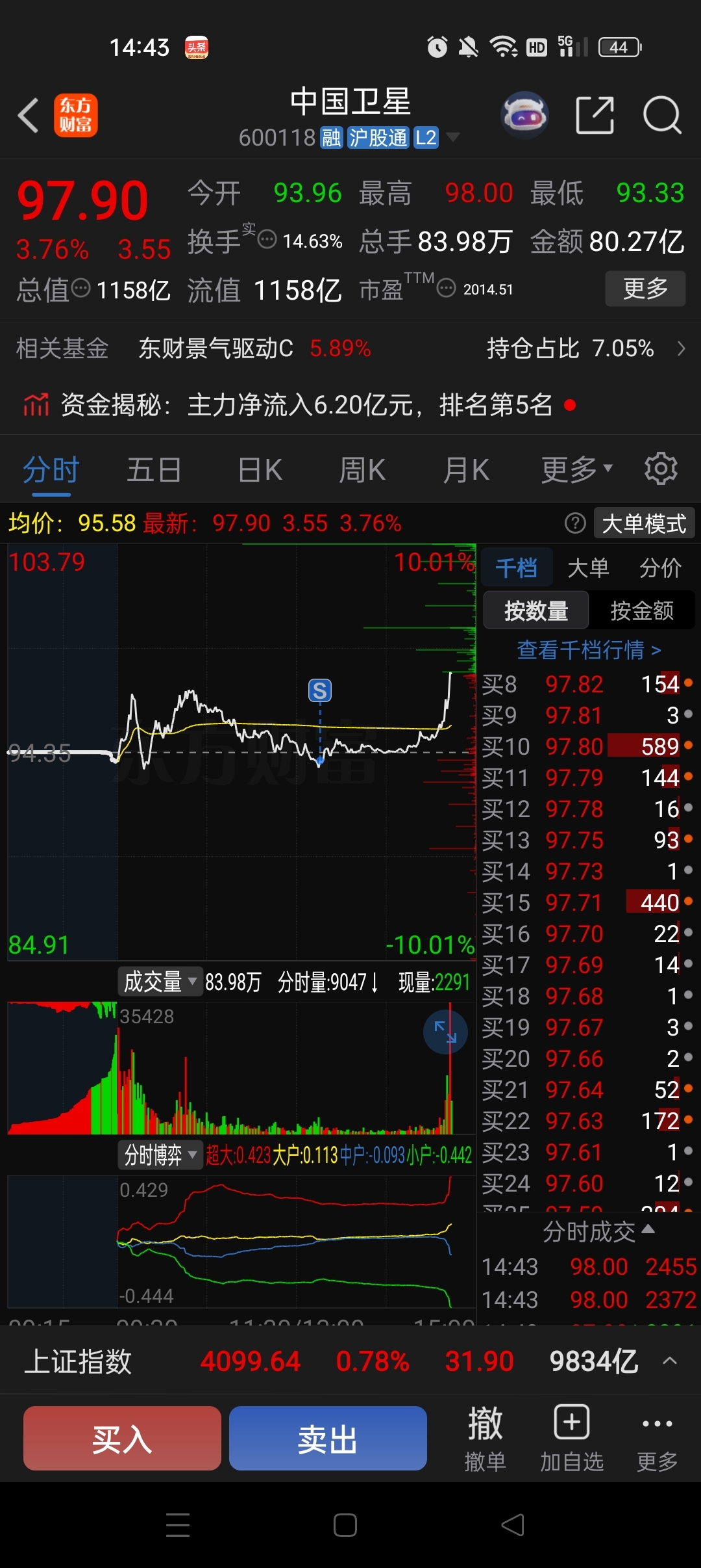 $中国卫星(SH600118)$ 真是不走都不涨的