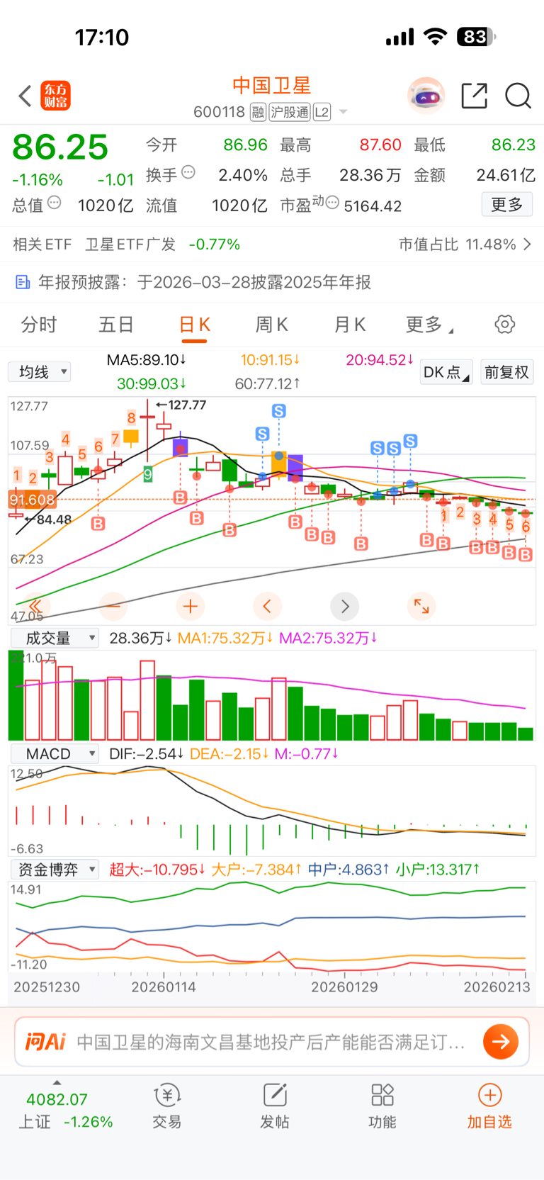 $中国卫星(SH600118)$ 你不嗦,我不嗦,膜谁来摸