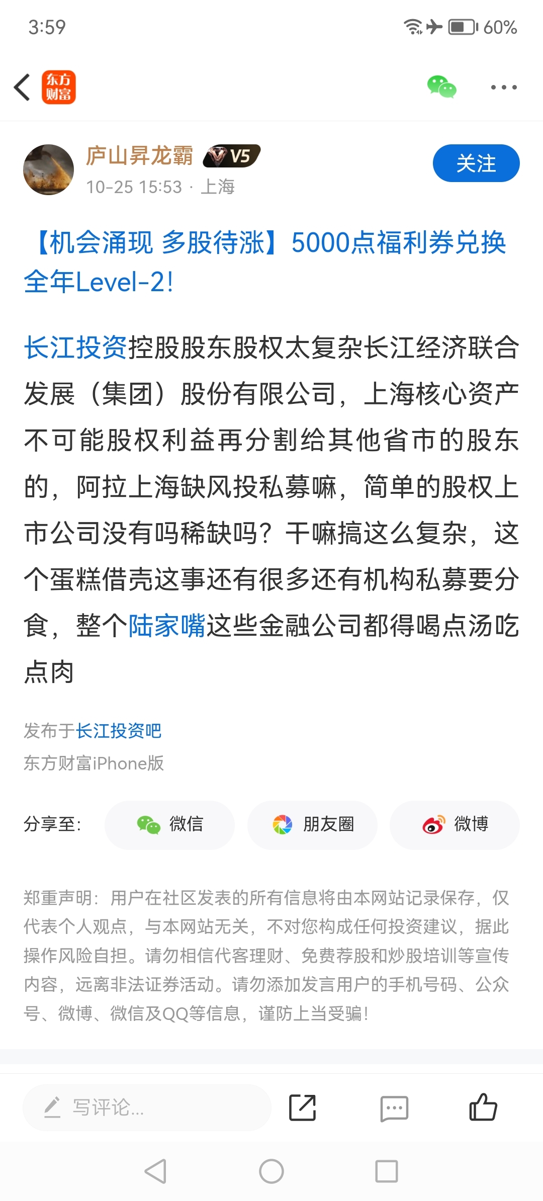 温馨提示: 1.根据《证券法》规定,禁止编造、传播虚假信息或者误导性信息,扰乱证券市场;2.用户在本社区发表的所有资料、言论等仅代表个人观点,与本网站立场无关,不对您构成任何投资建议。用户应基于自己的独立判断,自行决定证券投资并承担相应风险。《东方财富社区管理规定》