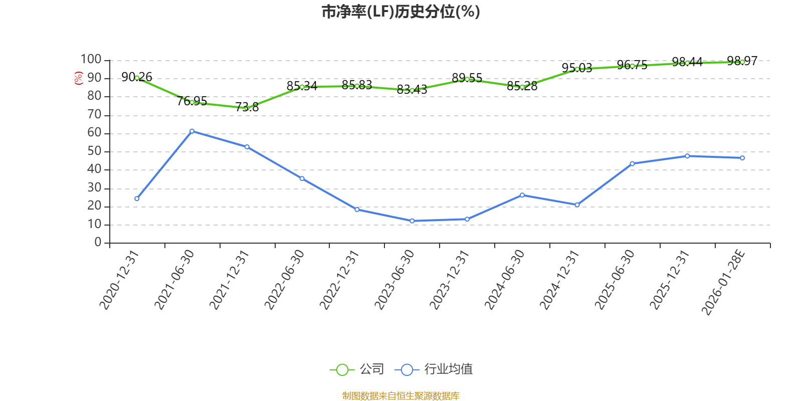 市盈率、市净率为负时,不显示当期分位数,会导致折线图中断。