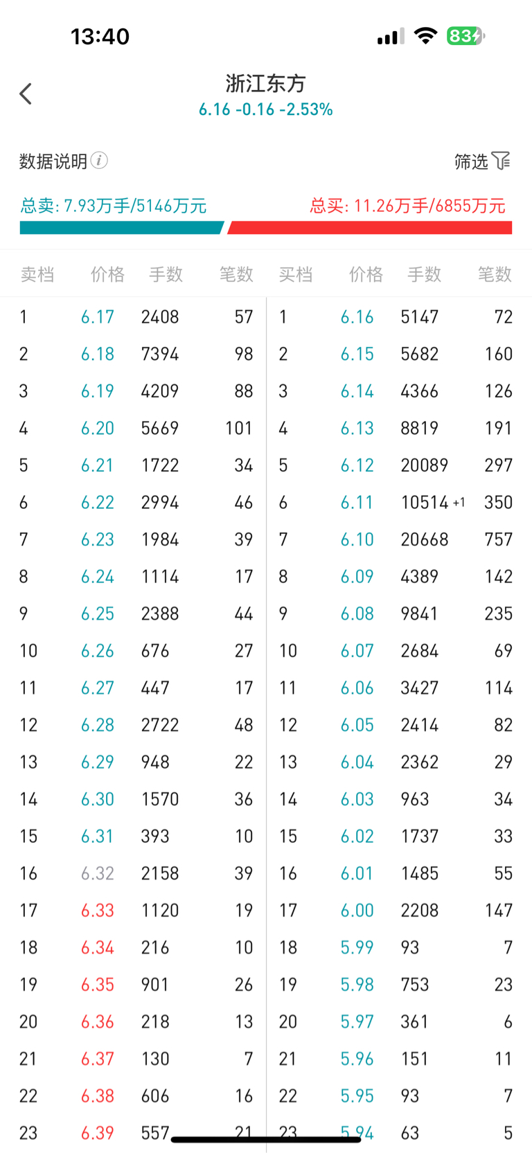 $浙江东方(SH600120)$ 多久没见买盘比卖盘还多哈哈哈看来这个位置的卖盘应该是短期的低点。