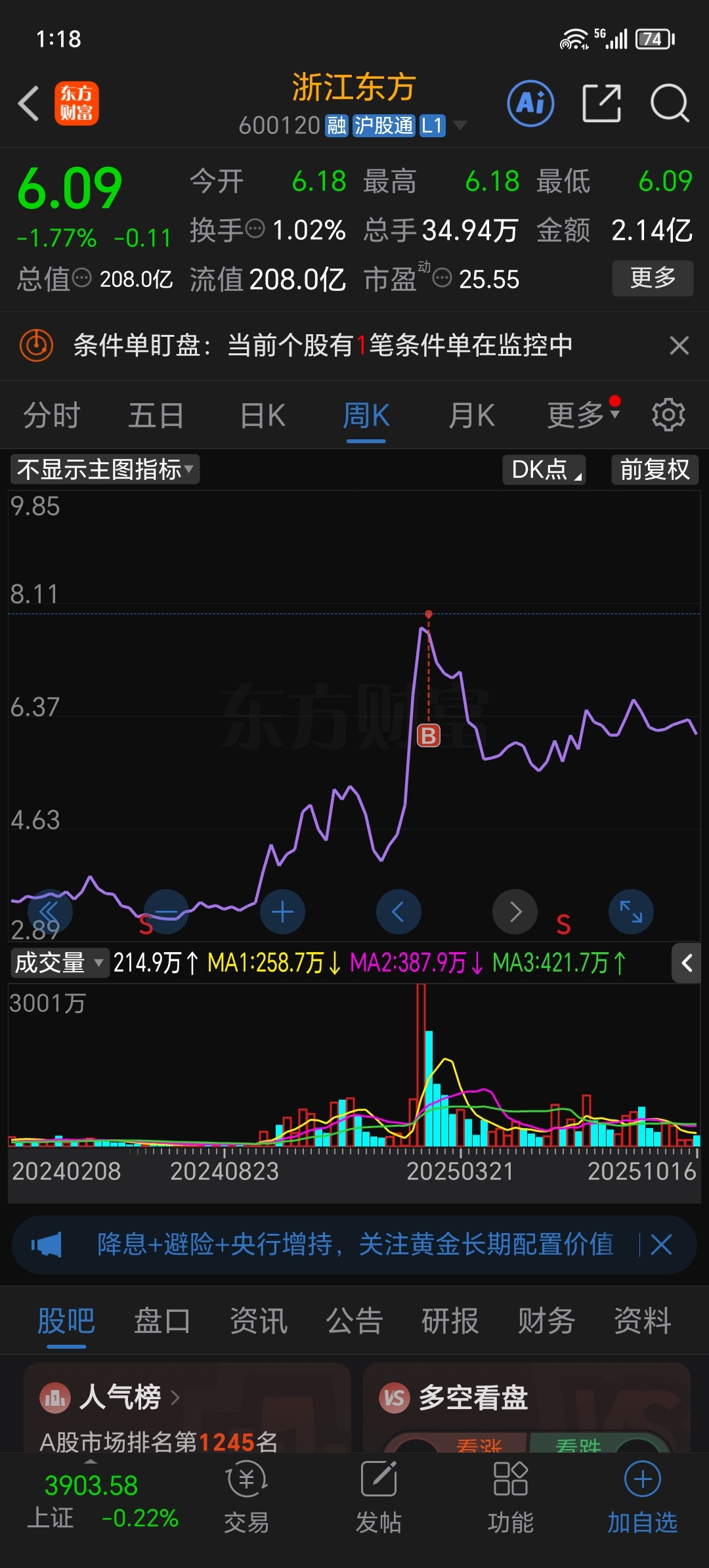 $浙江东方(SH600120)$ 这孙子有分红?已经不指望它涨了