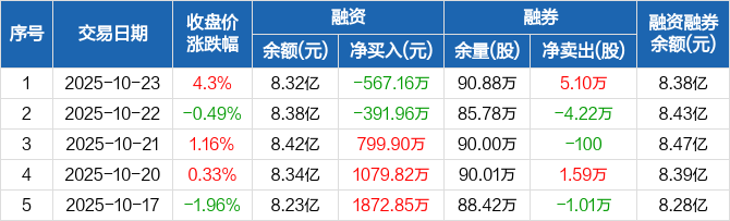 浙江东方:融资净偿还567.16万元,融资余额8.32亿元(10-23)