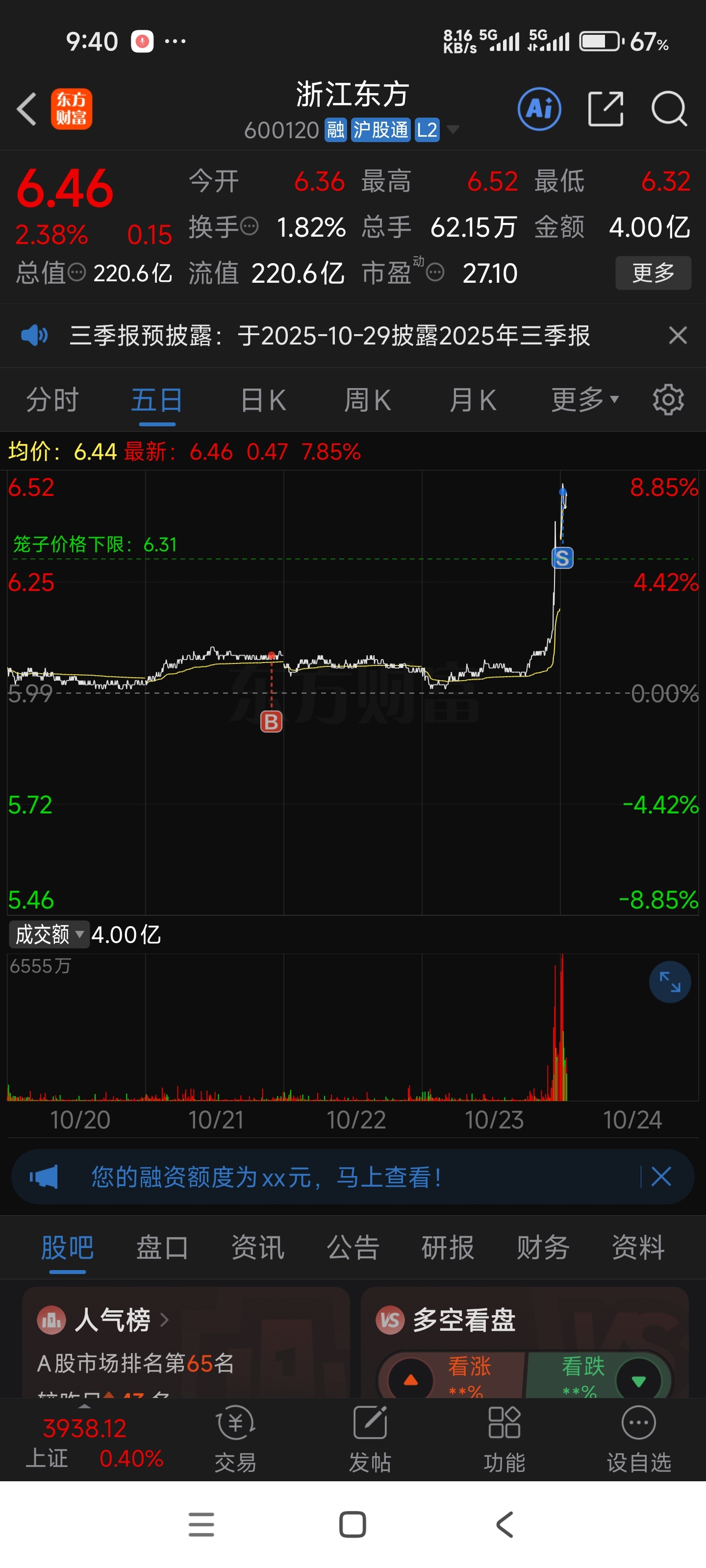 $浙江东方(SH600120)$ 感谢,等过几天回调6块,我一定来