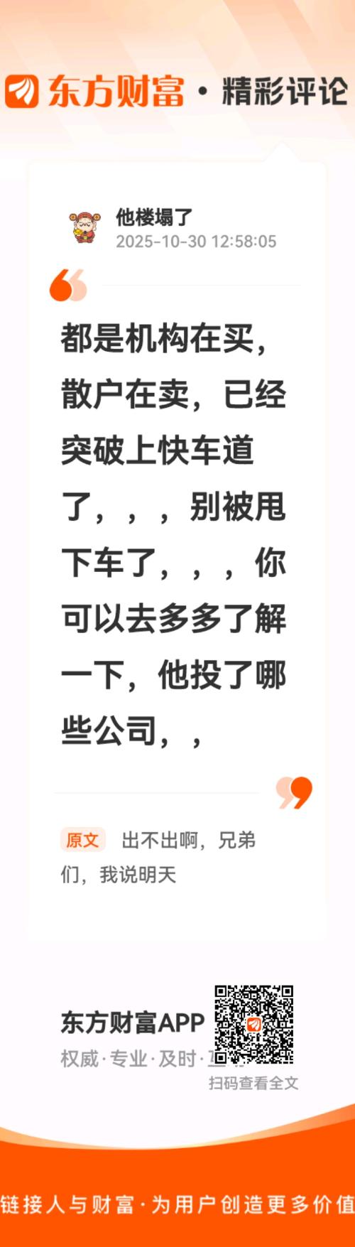 //@他楼塌了 :都是机构在买,散户在卖,已经突破上快车道了,,,别被甩下车了,,,你可以去多多了解一下,他投了哪些公司,,