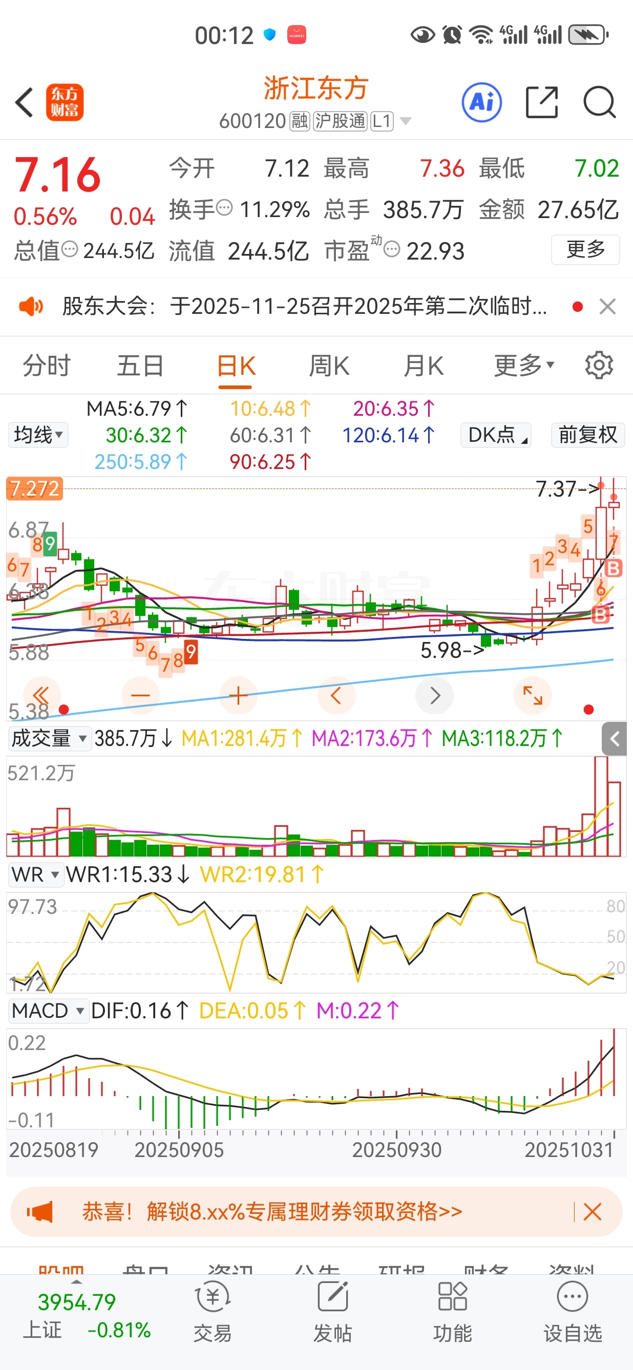 $浙江东方(SH600120)$ 大级别行情刚刚开始,我先建仓了,下跌加仓,上涨躺平