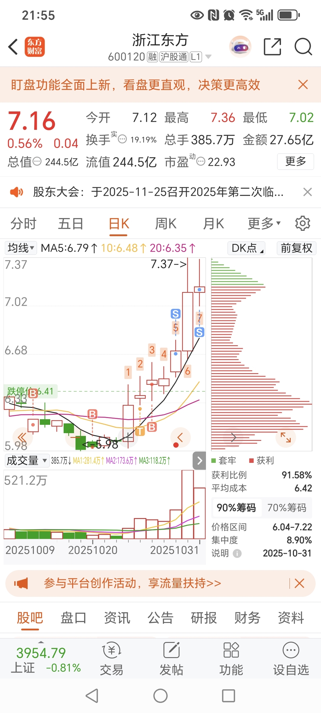 $浙江东方(SH600120)$ 赚了30个点走了,不贪最后的铜板,祝留下的兄弟发财