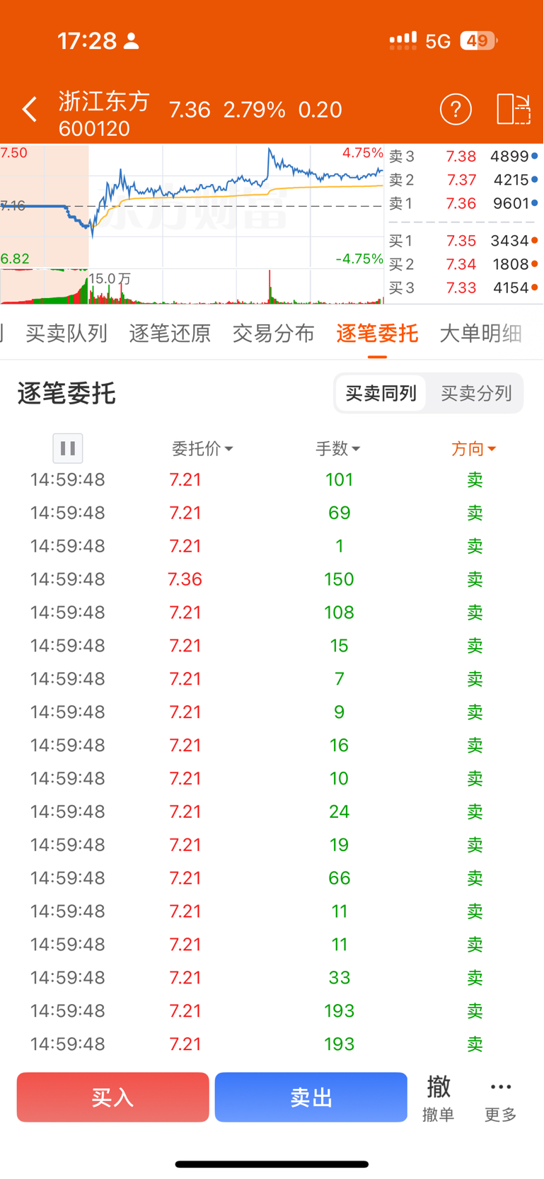 明天有点危险尾盘好多挂7.21在卖大单也是挂低价跑7.21这个是量化吗?