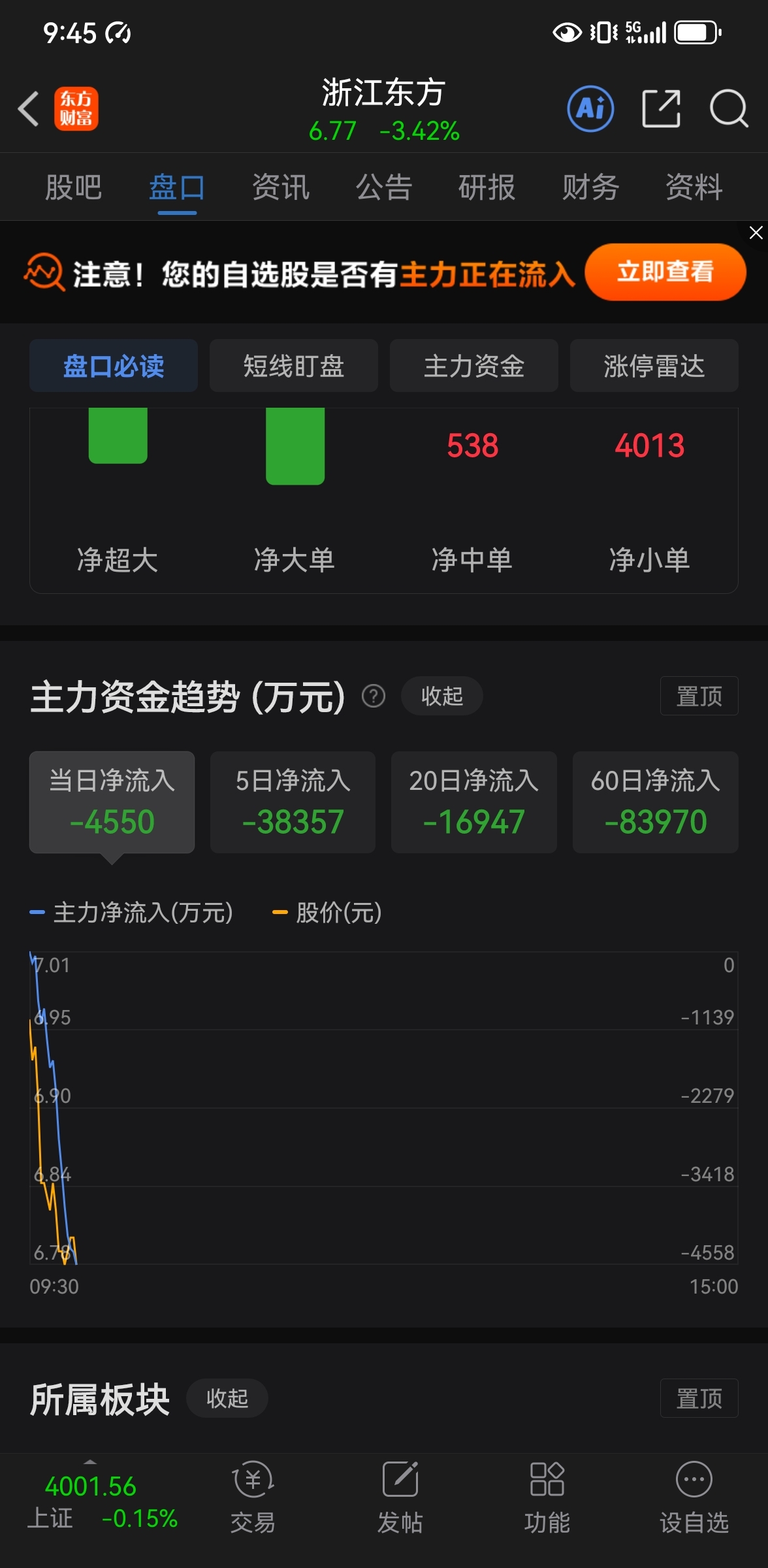 $浙江东方(SH600120)$ 60日接近9个亿资金流出