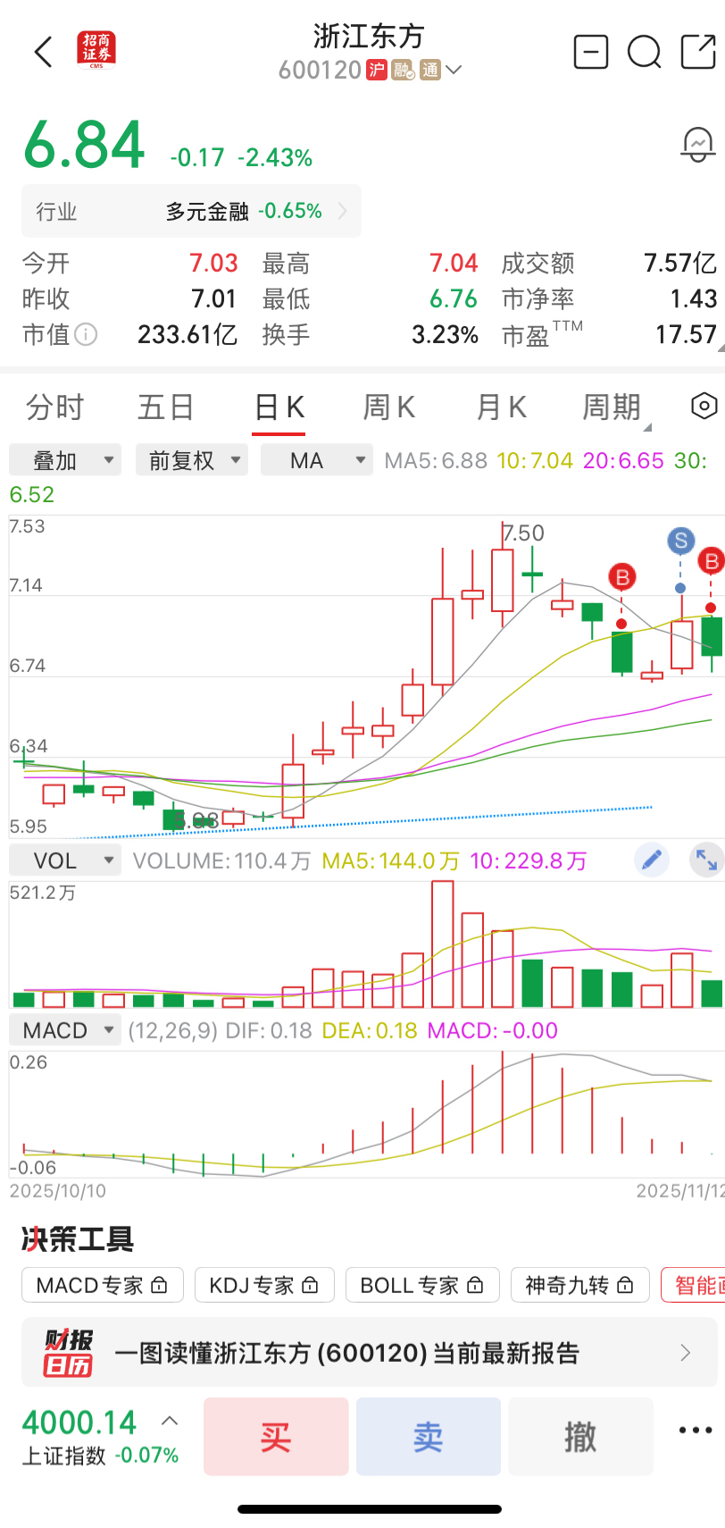 $浙江东方(SH600120)$ 昨天这根放量带上引的K线就是吸引跟风的,然后今天再下杀洗盘,其实就是让筹码换手,今天最终收出了下引线,而且下午在拉升的时候量很小,说明这里应该洗得比较充分了
