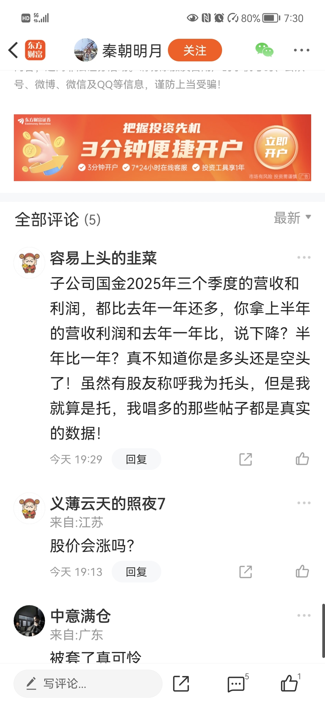 当托也要认真一点啊,子公司国金今年三个季度的营收和利润都超过了去年全年度,你拿今