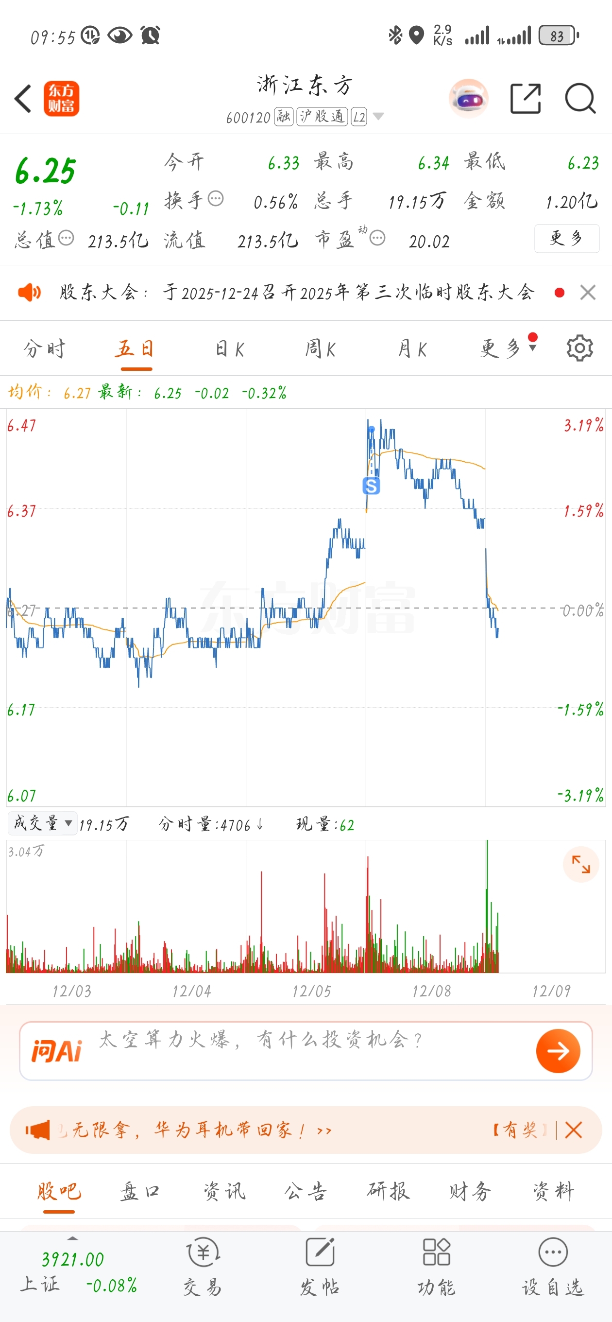$浙江东方(SH600120)$ 还好昨天减仓了