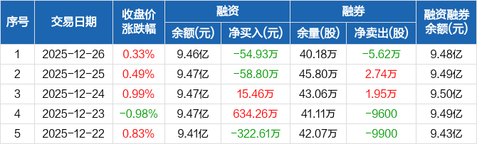 浙江东方:融资净偿还54.93万元,融资余额9.46亿元(12-26)