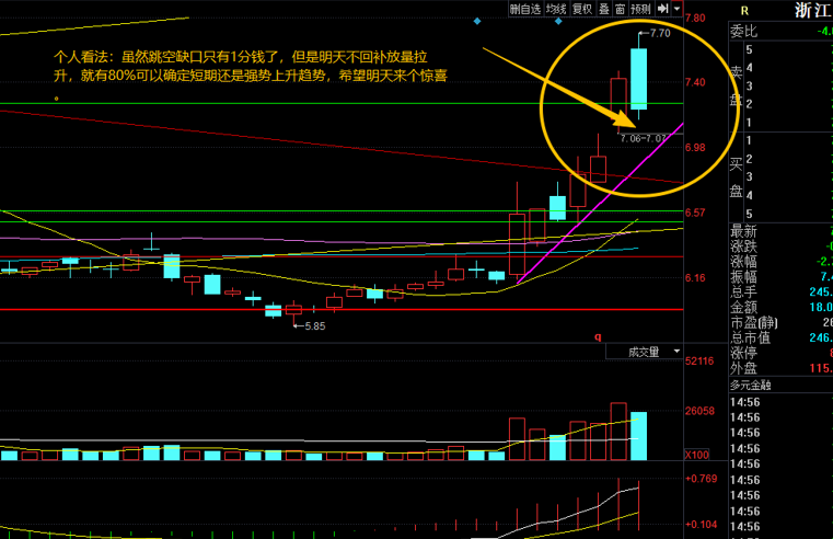 短期走横盘震荡选方向,还是延续上升通道,就开明天是否回补1分钱的缺口了