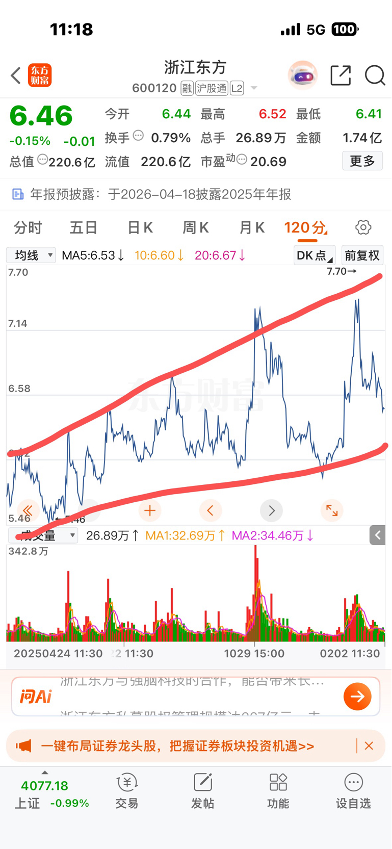 $浙江东方(SH600120)$ 这走势和上一波不能说像,只能说是一模一样,还得调整至少15个交易日,目前看底部上移了一毛左右,6元左右到底,三月份或许可以上8元,这股平均2个月冲刺一波,一波更比一波高