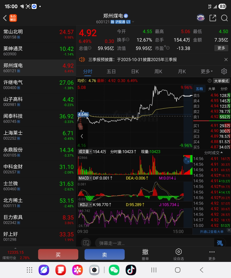 $郑州煤电(SH600121)$ 上蹿下跳,有行情,期待一下
