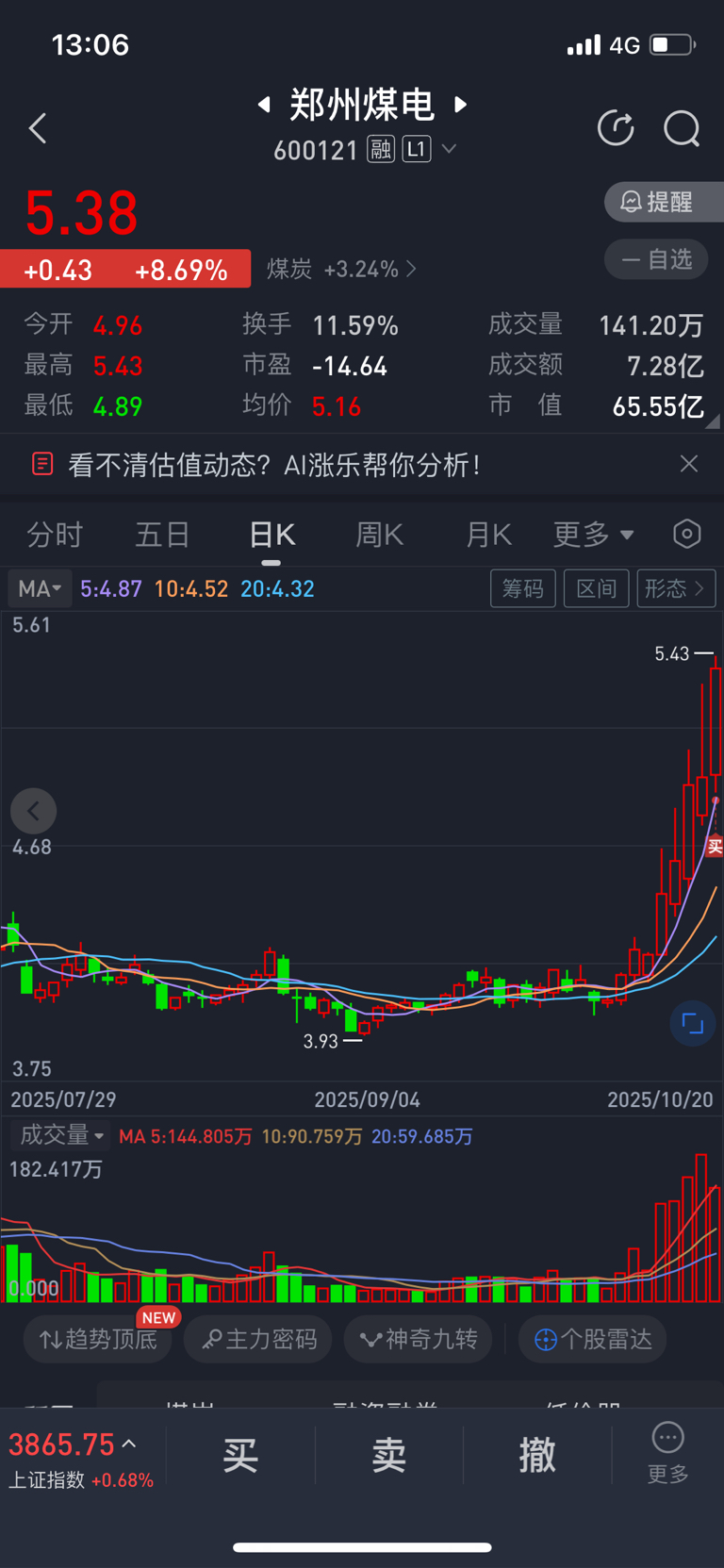 $郑州煤电(SH600121)$ 早上主要买的远大控股,这里买点玩的、掐指一算今天要涨停啊