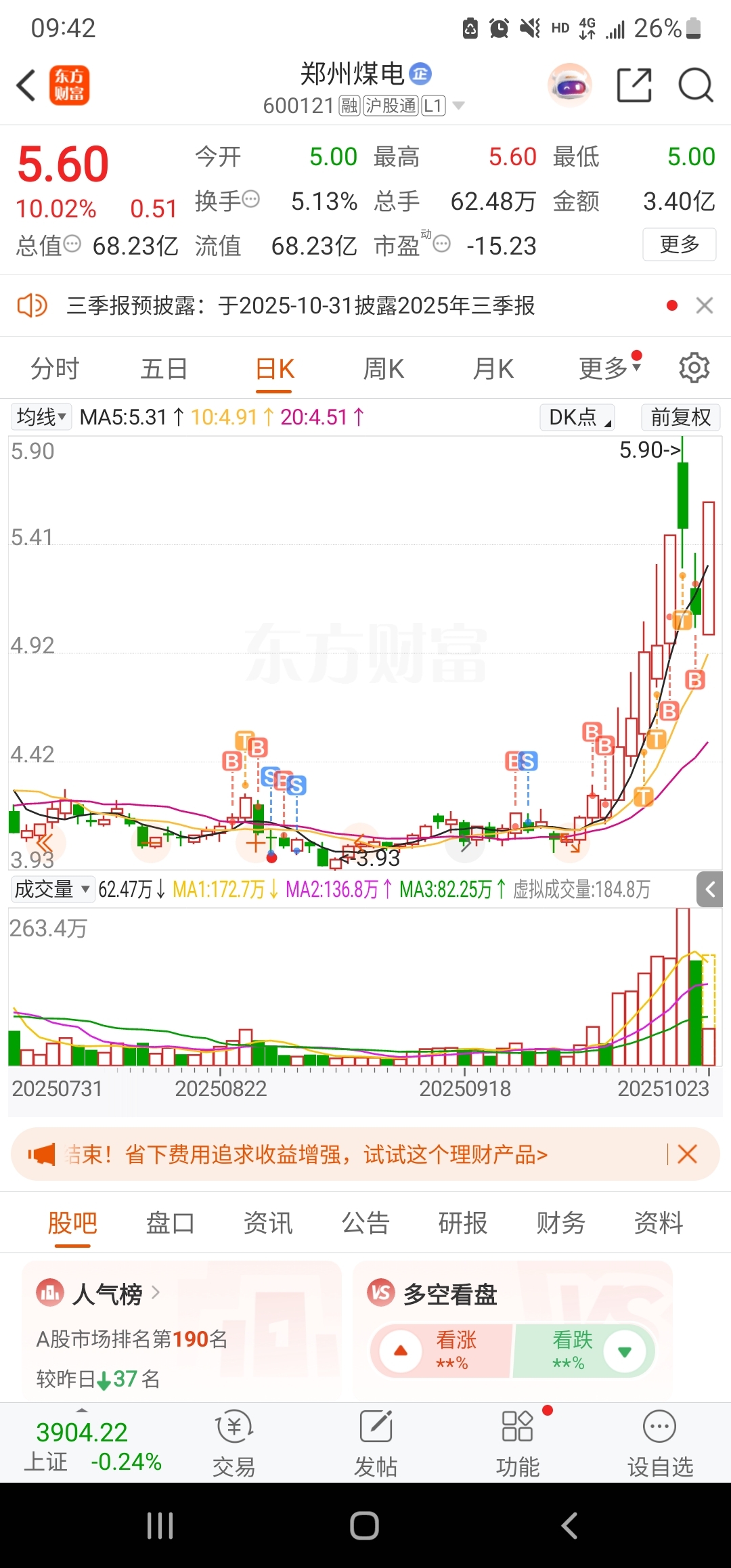 $郑州煤电(SH600121)$ 成功抗压,昨天近乎跌停,今天全回来了