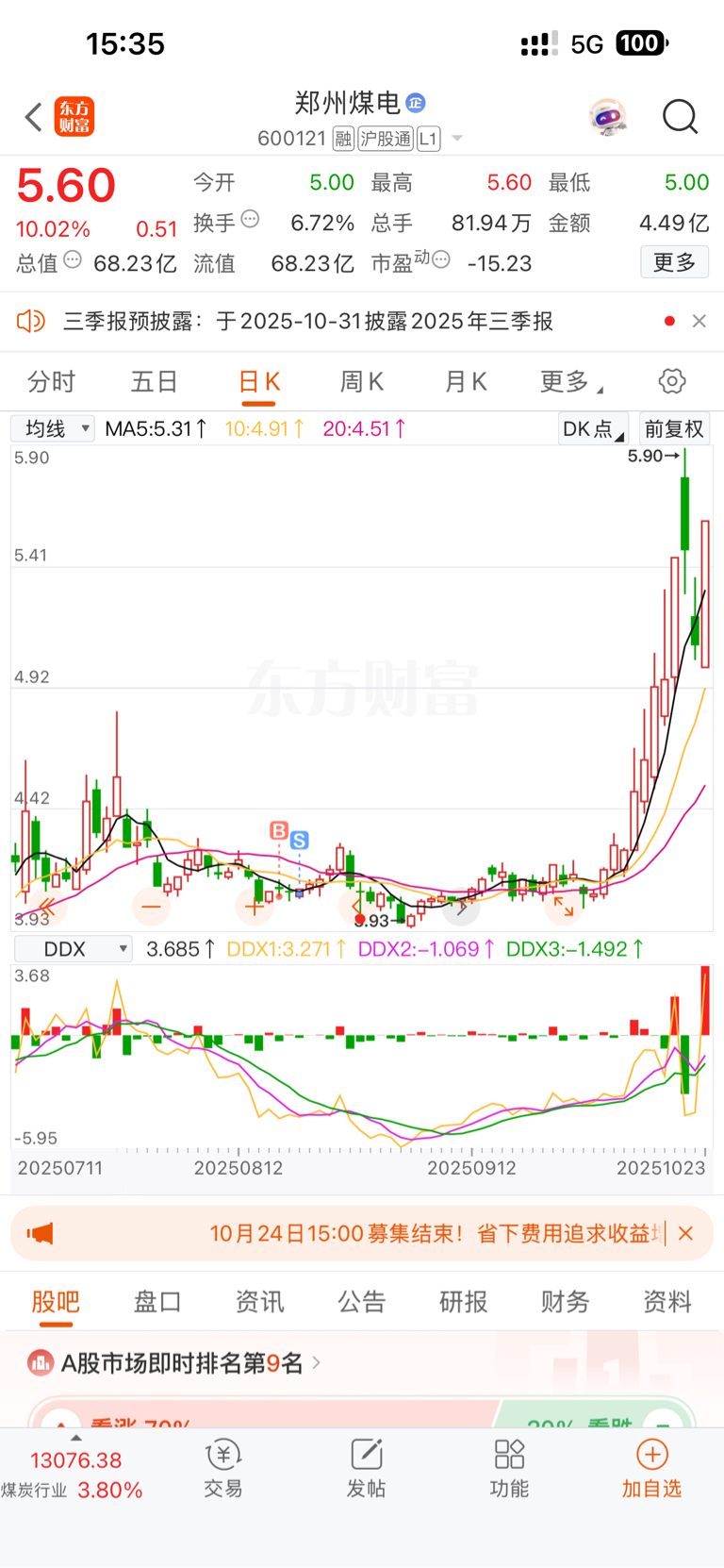 $郑州煤电(SH600121)$ 谁懂我啊。