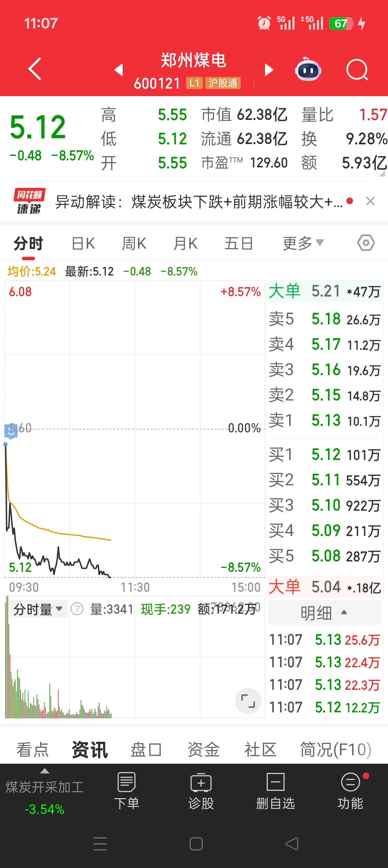 $郑州煤电(SH600121)$ 郑州没电,吃了太多亏了,开盘挂跌停砸的