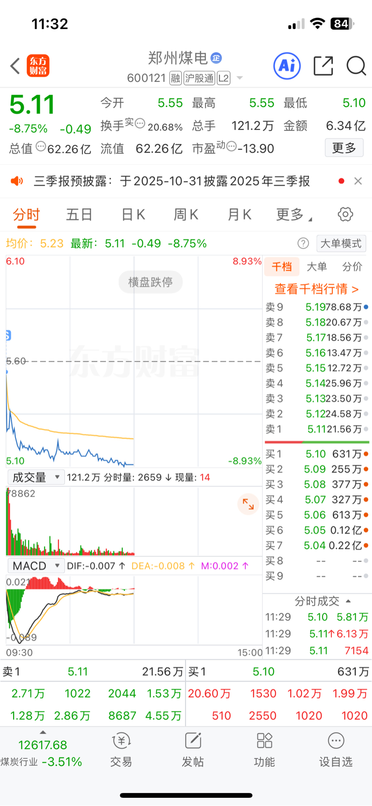 $郑州煤电(SH600121)$ 竞价卖出 救了我太多次