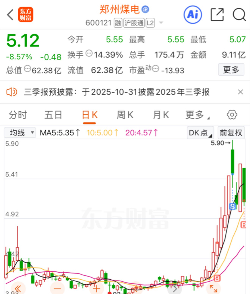 $郑州煤电(SH600121)$ 我回来了,下周一涨一下,老登股