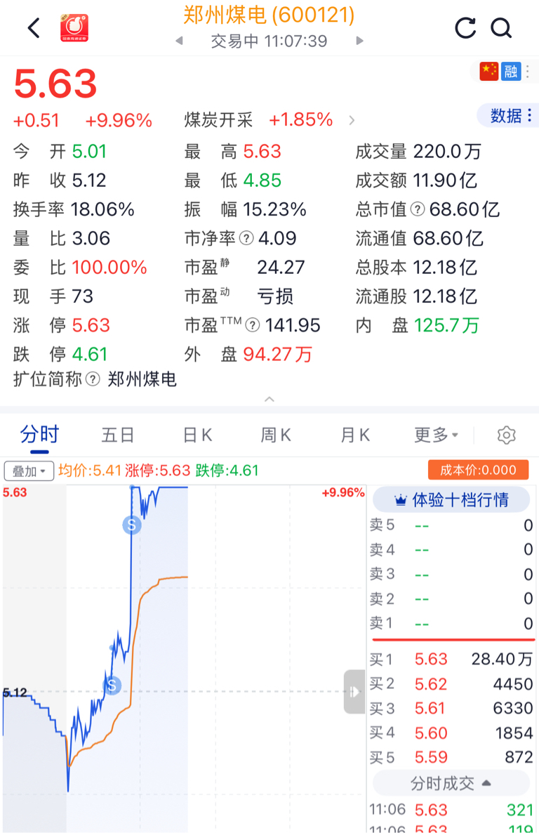 $郑州煤电(SH600121)$ 被洗出去了,祝留下的兄弟们连板