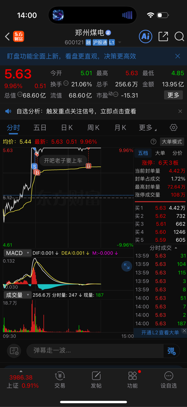 $郑州煤电(SH600121)$ 立贴为证 /明天继续上攻