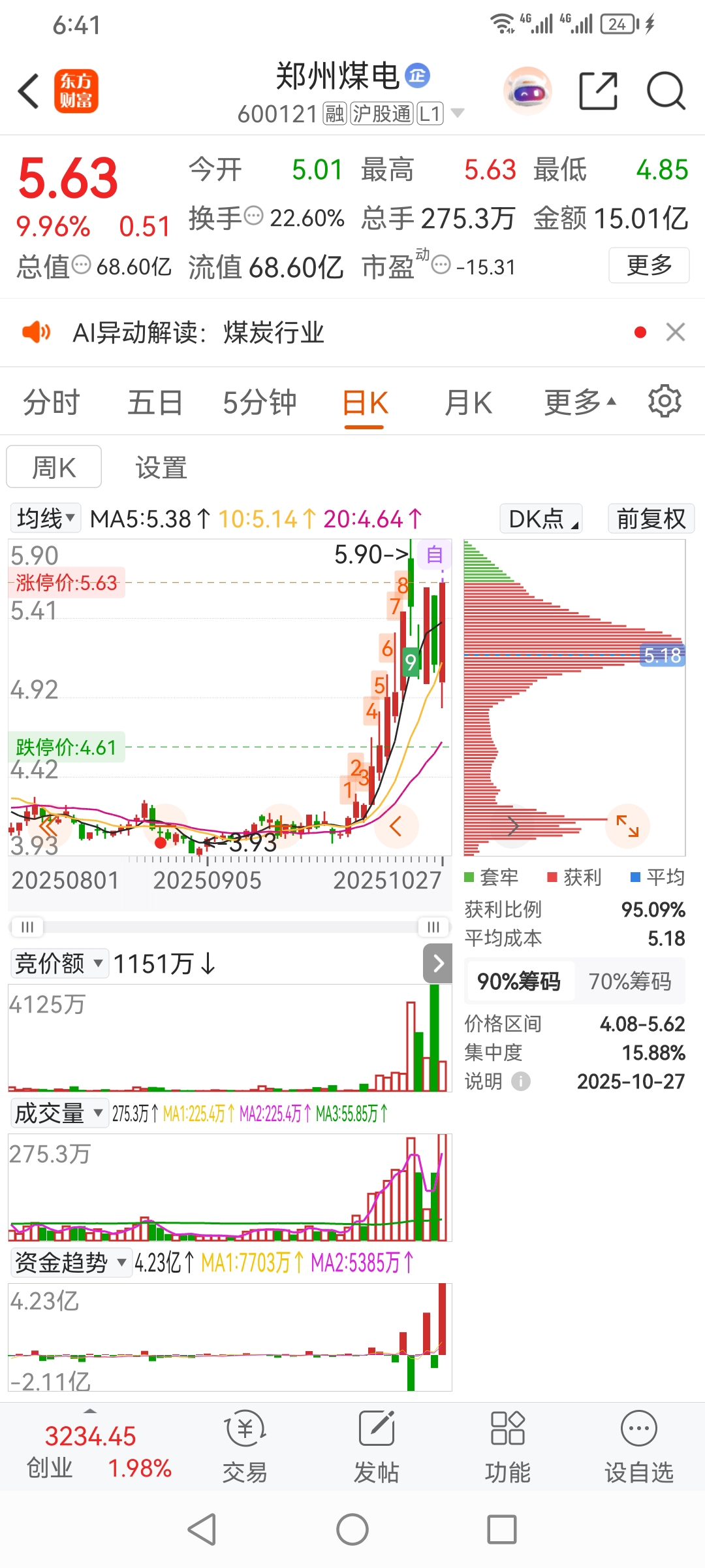 军哥短线,炒作煤炭。郑州煤电。下跌试错参与2成仓位大涨回避