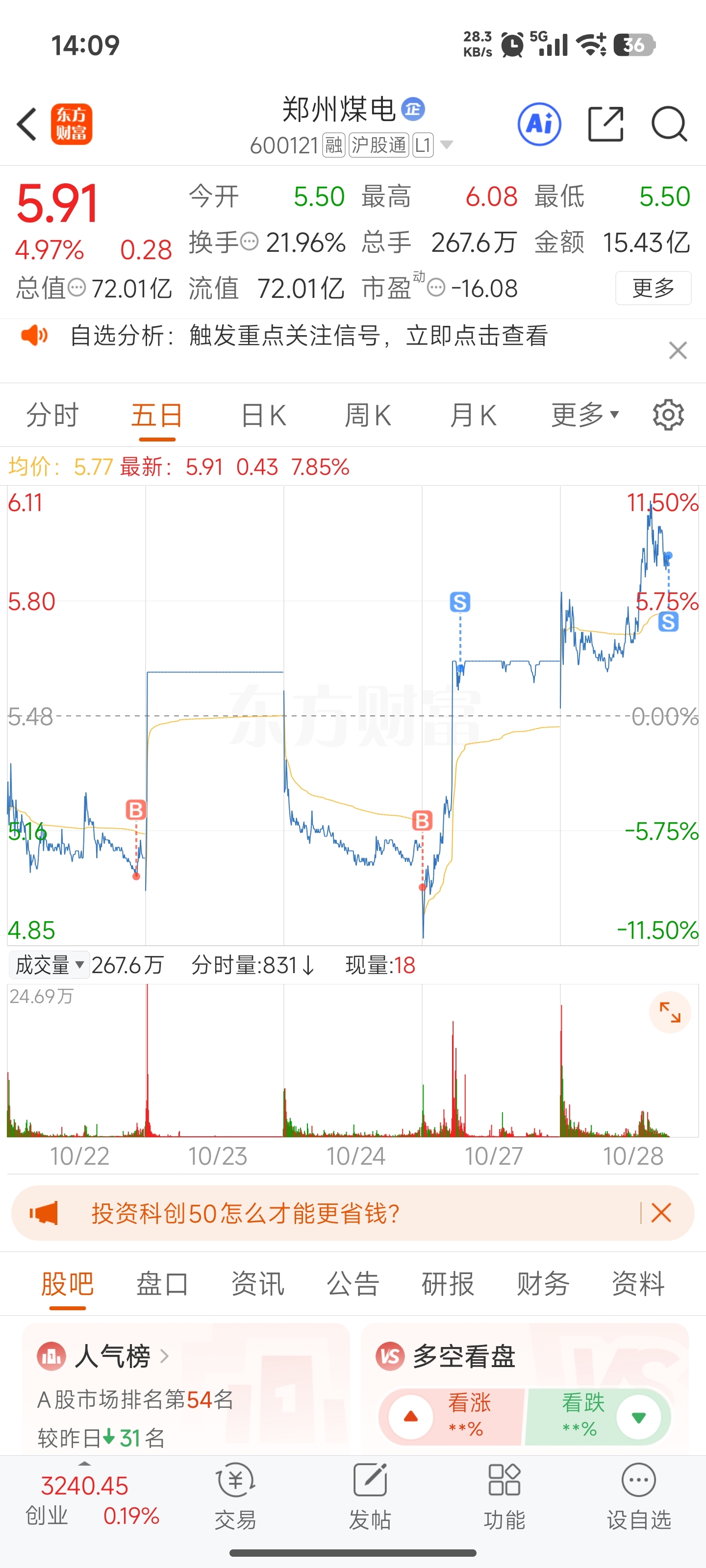 $郑州煤电(SH600121)$ 大哥们继续发财,小弟先走一步。