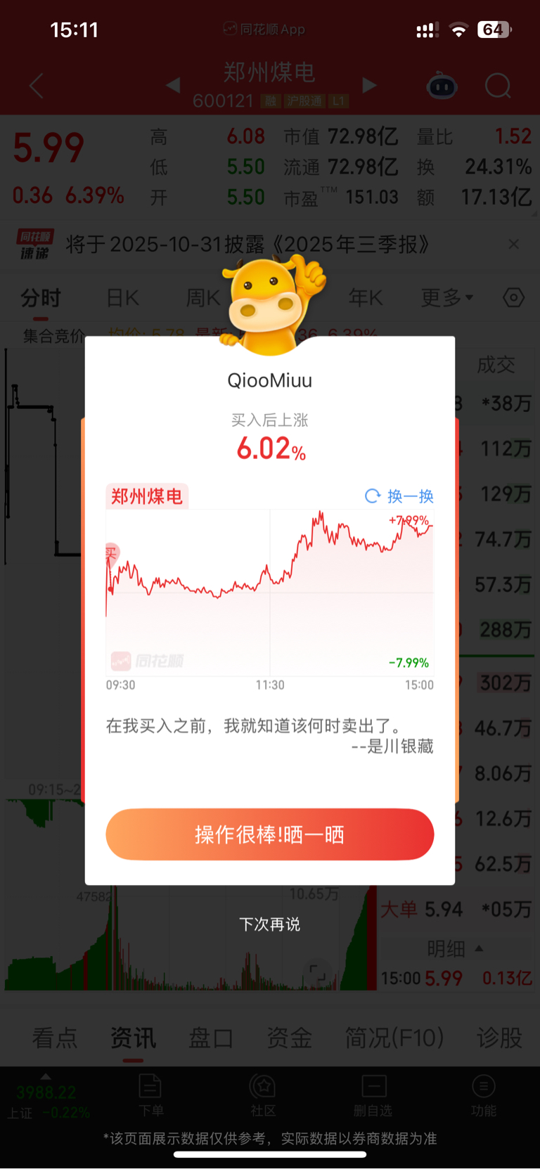$郑州煤电(SH600121)$