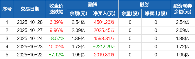 融资方面,当日融资买入1.92亿元,融资偿还1.47亿元,融资净买入4501.26万元,净买入额创12个月新高,连续3日净买入累计8125.52万元。融券方面,融券卖出0股,融券偿还0股,融券余量0股,融券余额0元。融资融券余额合计2.54亿元。