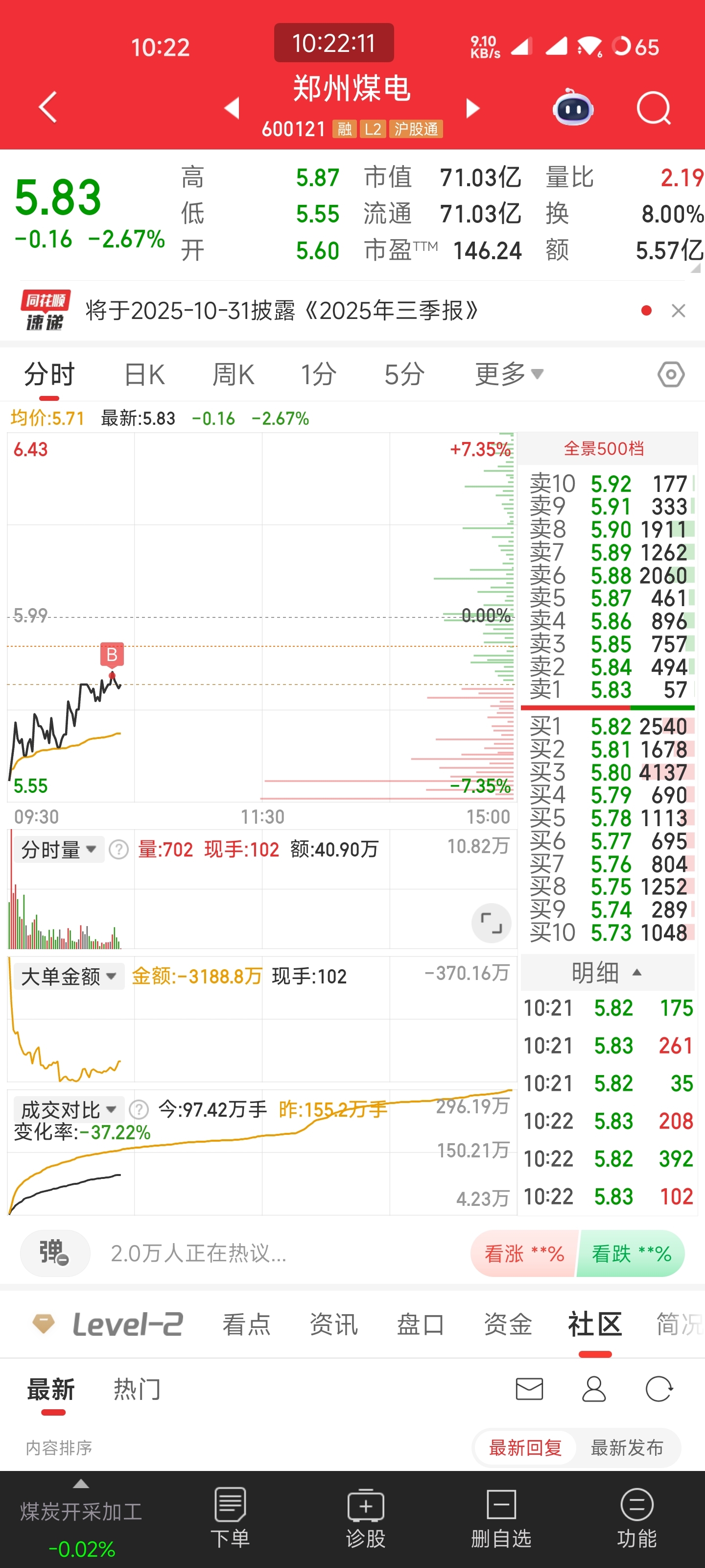 $郑州煤电(SH600121)$ 竞价挂了5.55没买到,只好把你买下来