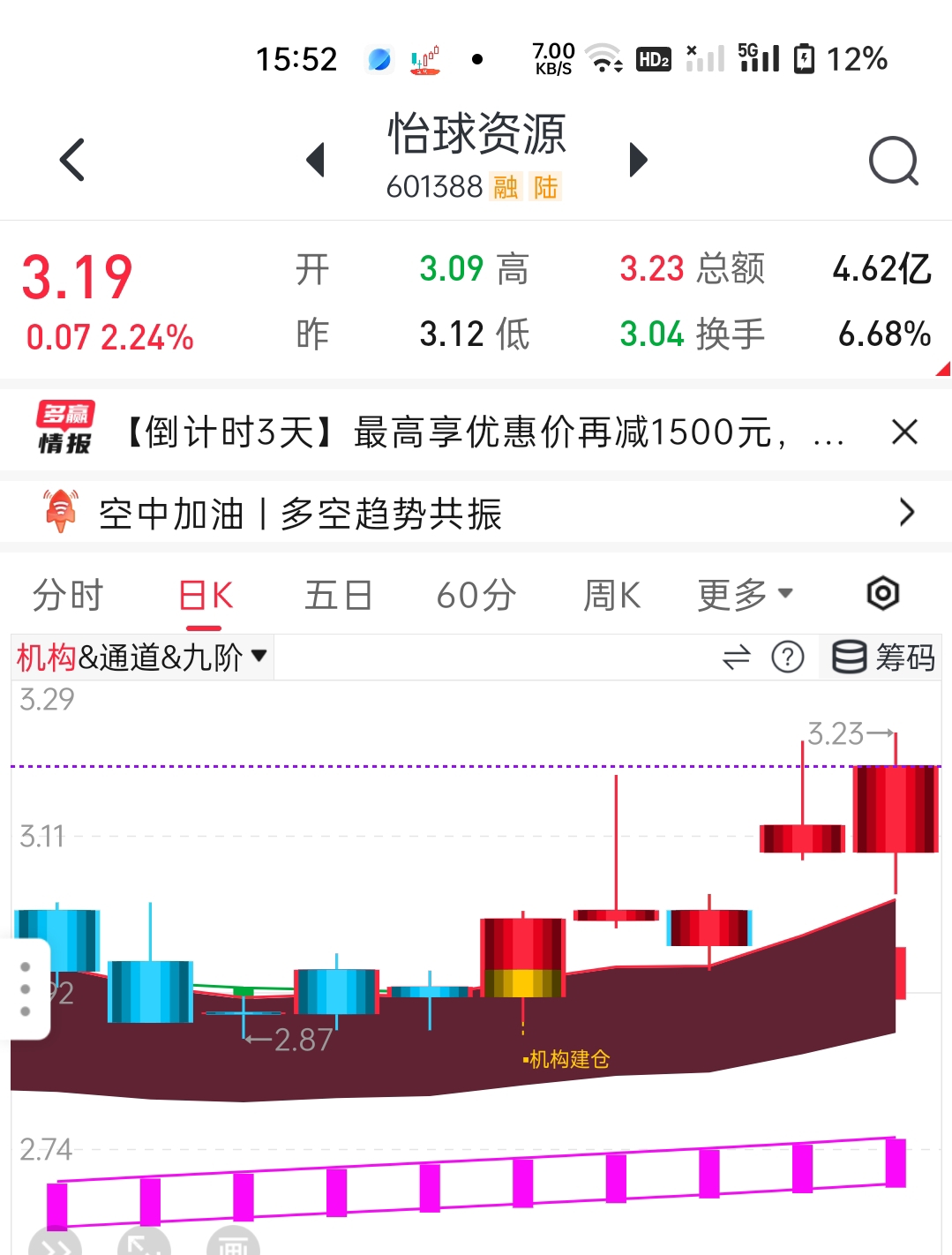 不得不说!今天郑州煤电和怡球资源真的非常强势!整天盘中出现过冲过回落的行情,主力资金建仓洗盘,振仓的套路演绎的炉火纯青!主力资金有做妖的决心和意志!明天又一字板的预期!也有大开低开走高!强势厂字板儿的概率最大!有票的恭喜发财!没票的开盘5分钟内进去!难得机会不可再错过!