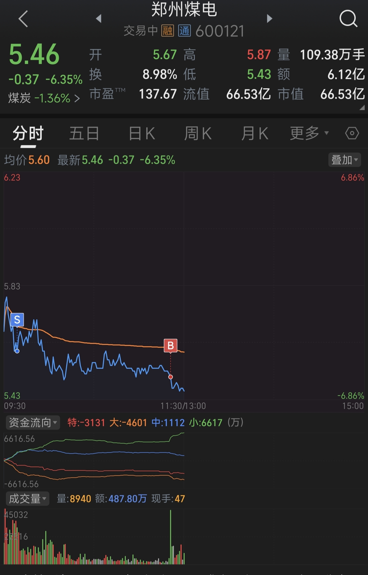 $郑州煤电(SH600121)$ T了1个点,减少点损失。