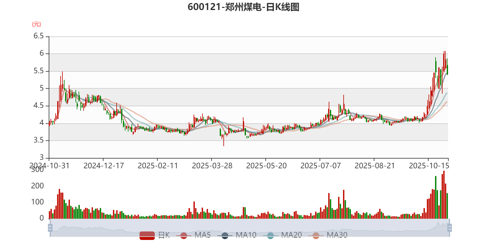 以10月30日收盘价计算,郑州煤电目前市盈率(TTM)约为-58.57倍,市净率(LF)约4.3倍,市销率(TTM)约1.79倍。